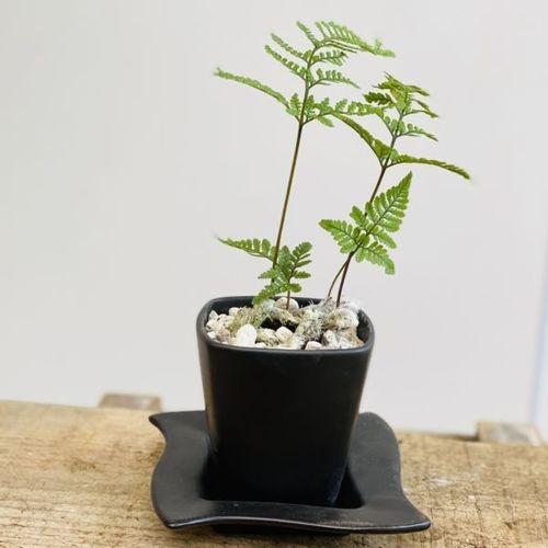 育てるのが簡単 常盤シノブのミニ盆栽 デザイン鉢 白or黒 盆栽 苔玉の通販サイト インテリア盆栽工房boncyu 妖精の庭ガーデニング シダの庭 植物栽培